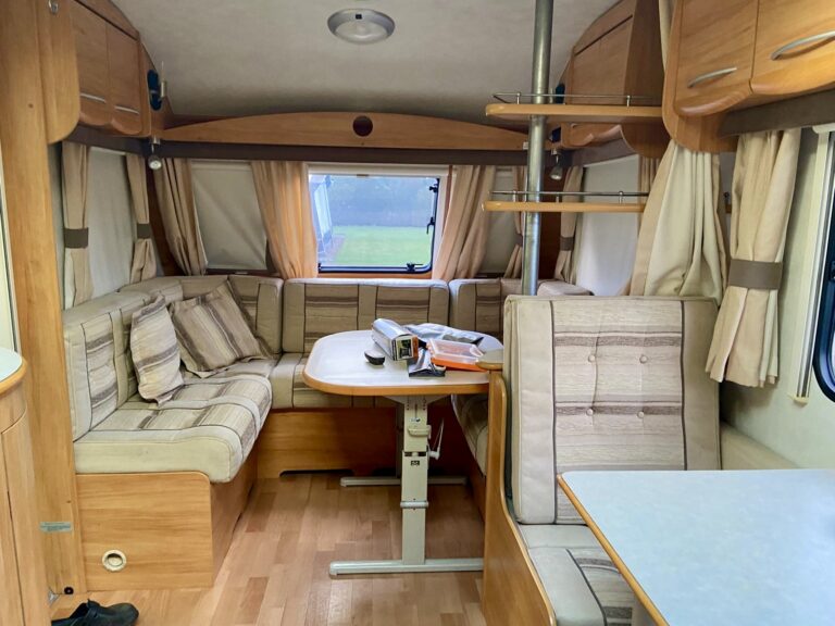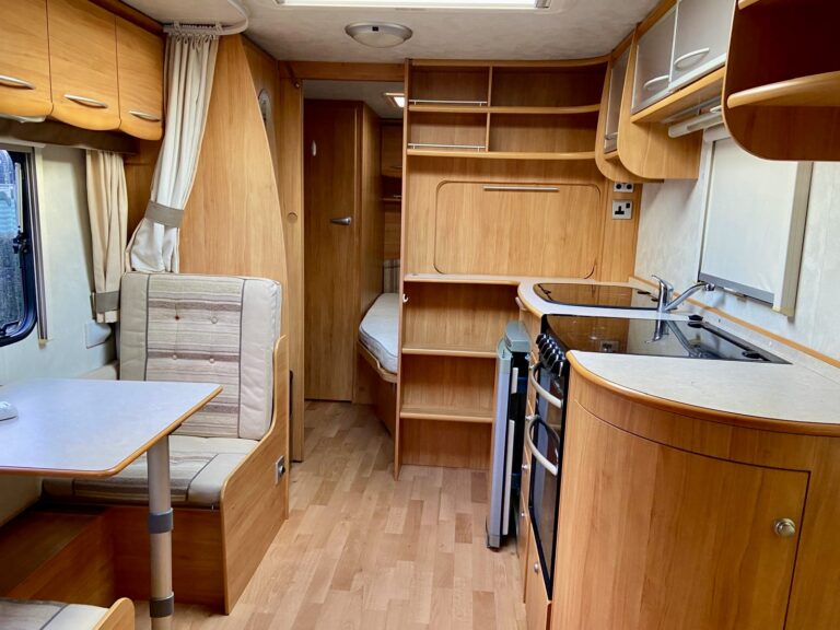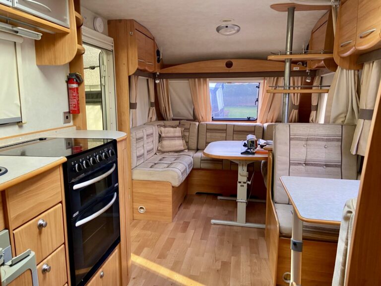 *Touring Caravan* 6-berth Fleetwood Sonata Symphony PREOWNED This spacious 6-berth caravan is ideal for families or couples seeking additional space and the convenience of a fixed bed. Sleeps Size 7.86m x 2.29m Park Orleton Rise Holiday Park Key features Fixed bedFull awning includedSingle axleAbundance of storage space Description This spacious 6-berth caravan is ideal for families or couples seeking additional space and the convenience of a fixed bed. The U-shaped front seating and dining area seamlessly converts into a double bed, while the side dinette transforming into bunk beds. The kitchen is well-equipped with ample storage, including lockers, cupboards, and drawers. It features a large sink, an under-counter fridge, a 4-burner gas hob, and a separate gas oven and grill. At the rear of the caravan, a fixed bed is complemented by storage cabinets and shelving. The bathroom is fully equipped with a shower, WC, and basin. Shipping length: 7.86 m or 25.79 ft Internal length: 6.10 m or 20.01 ft Width: 2.29 m or 7.51 ft