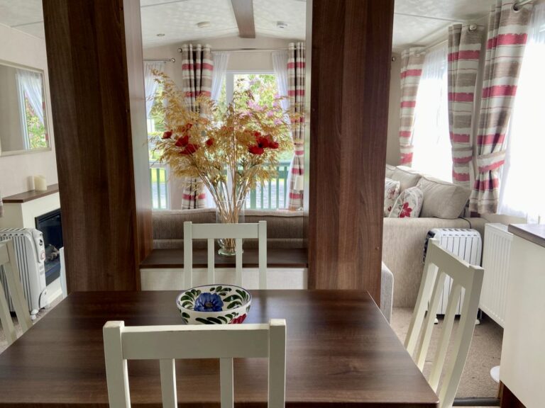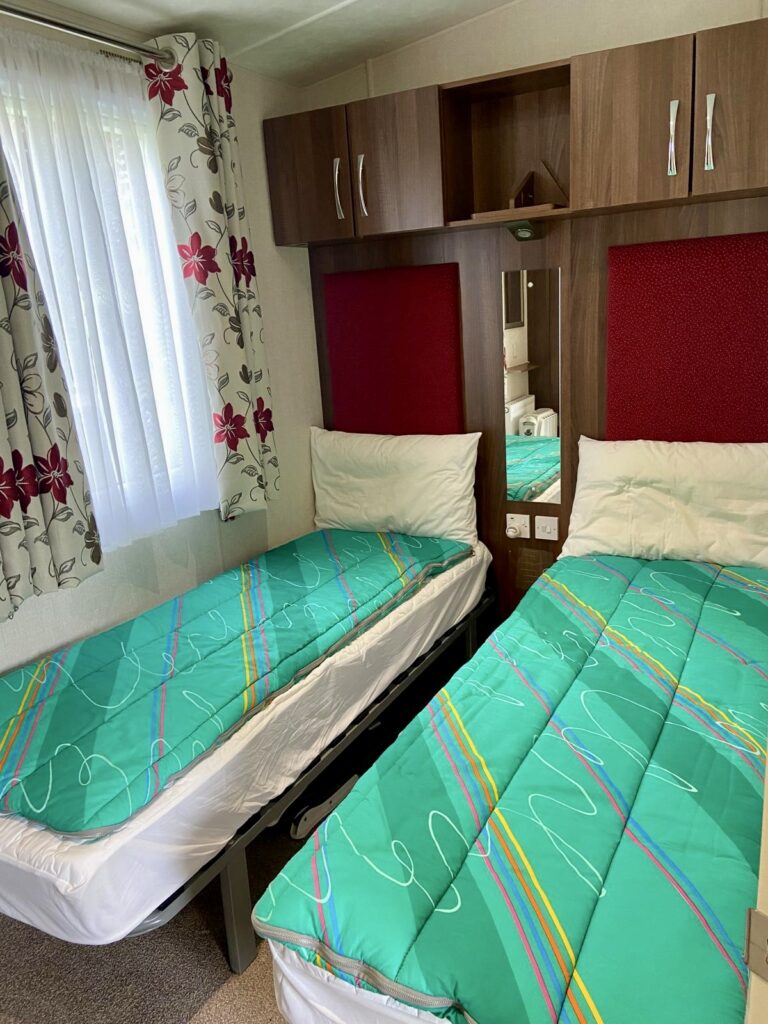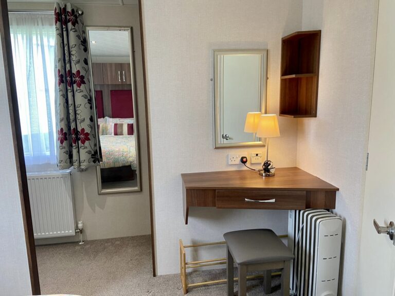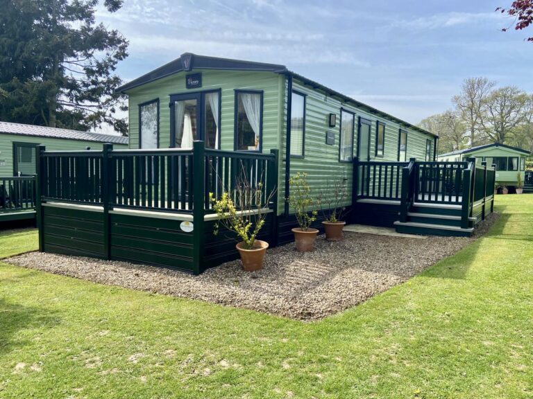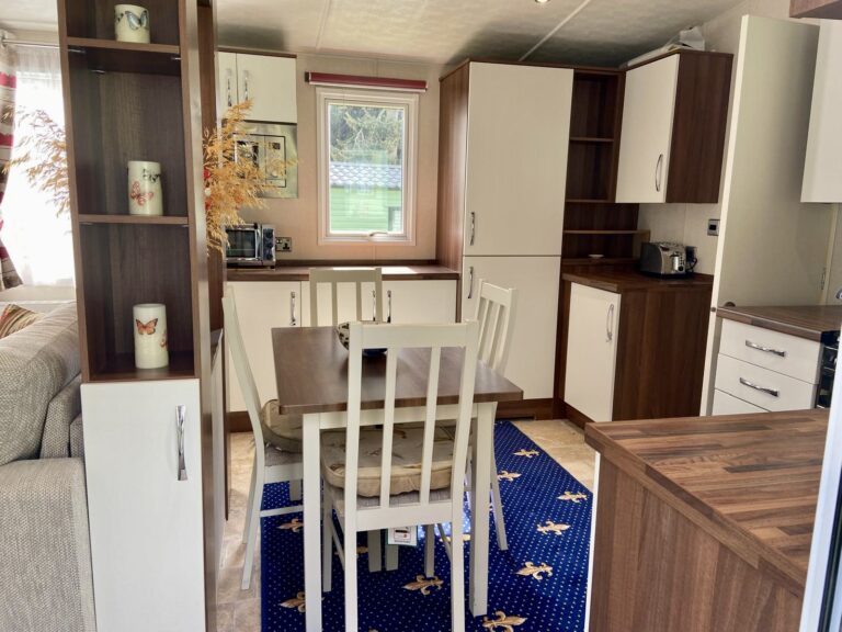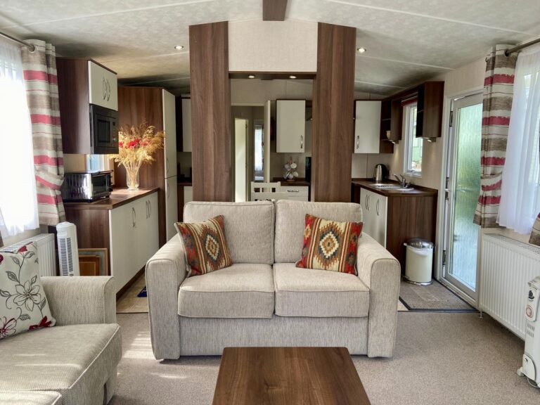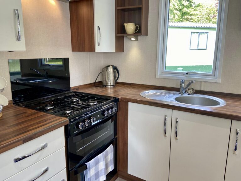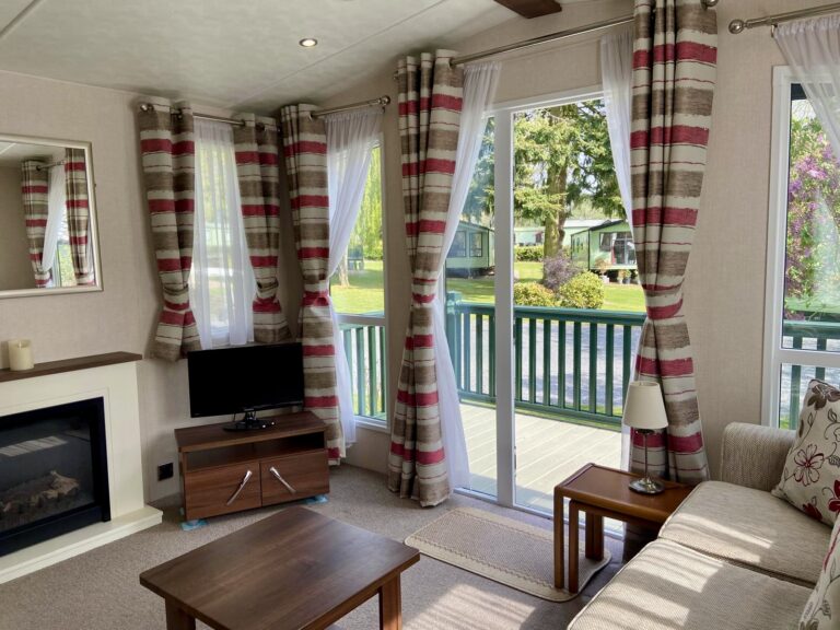 Victory Grovewood PREOWNED This Victory Grovewood boasts an open plan living space with front and side decking, to enjoy the countryside surroundings. Sleeps Size 38ft x 12ft Park Orleton Rise Holiday Park Key features 2026 Season Pitch Fee IncludedDouble glazed & central heatingDecking and skirting includedIntegrated appliancesFeature fireplace Description Upon entering the Victory Grovewood, you are greeted by a spacious open-plan lounge and kitchen area. The kitchen features a central island with deep shelves and cupboards on both sides, complemented by a boxed-in top with downlights and a wide shelf below. This design subtly separates the lounge from the kitchen while maintaining an unobstructed view and allowing easy access around both sides. The kitchen is arranged in two ‘L’ shapes. Adjacent to the entrance, a stainless steel sink is set into a timber-effect countertop with cupboards below and a window above. Wall-mounted cupboards on either side are equipped with integrated downlights. To the left, a gas cooker with an oven, grill, and four-burner hob is topped by an illuminated and vented cooker hood, with additional base and wall cupboards. On the opposite side, the other ‘L’ shape features an extended countertop with more cupboards below, interrupted by an integrated fridge freezer. An integrated microwave is positioned at eye level, and a freestanding dining table with chairs comfortably seats four. The lounge area includes soft furnishings, comprising a 2-seater and a 3-seater freestanding sofa, a coffee table, and a freestanding corner TV unit, complemented by a feature electric fireplace. Large windows and a front patio door open onto an expansive decking area, ideal for enjoying the surrounding countryside. For added convenience, there is a compact WC and hand basin for visiting guests. The main bathroom is equipped with a large shower, WC, mirrored cabinet, and a hand basin with an under-sink storage cupboard. The master double bedroom offers twin side-shelves, ample overhead storage, a double wardrobe, and a drawer unit, as well as a corner vanity unit with a mirror. This room also provides direct access to the main bathroom. The twin bedroom includes a central bedside cabinet with a fitted light, overhead storage cabinets, and a fitted wardrobe. This holiday home also benefits from a spacious side decking.